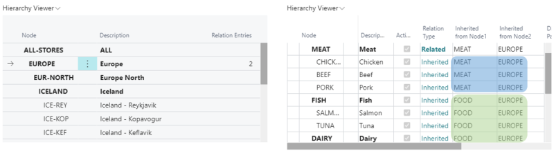 Please note the Relation Type field in the Hierarchy Viewer. The value Related indicates that there is an existing Relation. The value Inherited indicates that the current Node received its setting from a parent Relation. The parent Relation can be identified with the Inherited from Node1 and Inherited from Node2 fields.