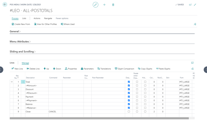 Example: Menu POSTOTALS, four lines include Tags: