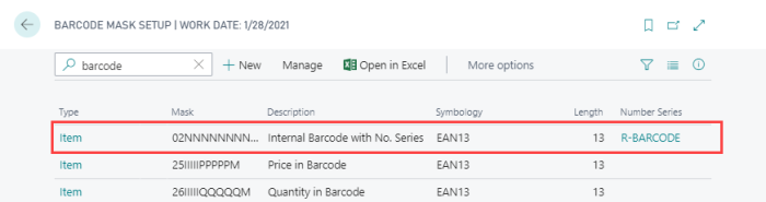 Barcode mask setup