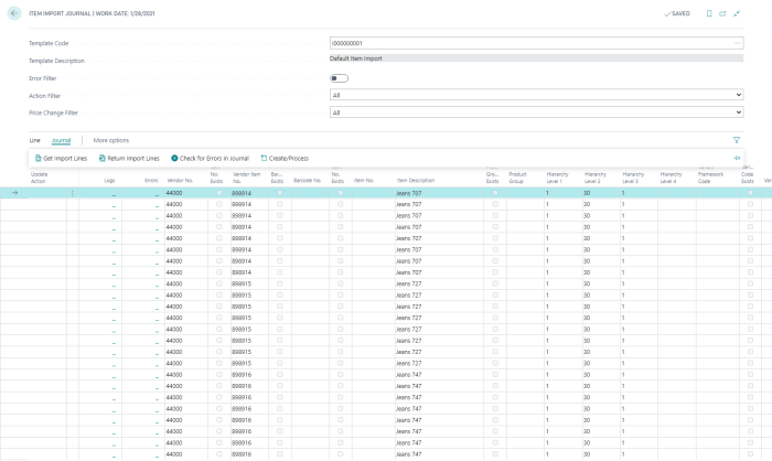 - To create and/or update the item master with the data from the Item Import Journal: