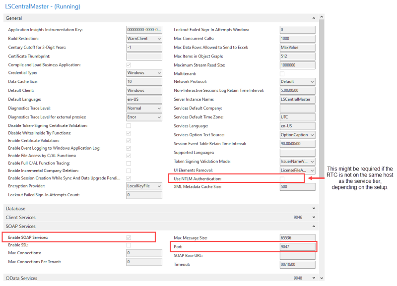 • Open the Dynamics Business Central Administration Panel for your current version, and make sure the Enable SOAP Services check box is selected.