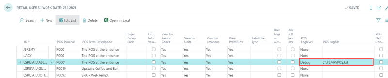 3. Specify a path for the log file in the POS LogFile column.