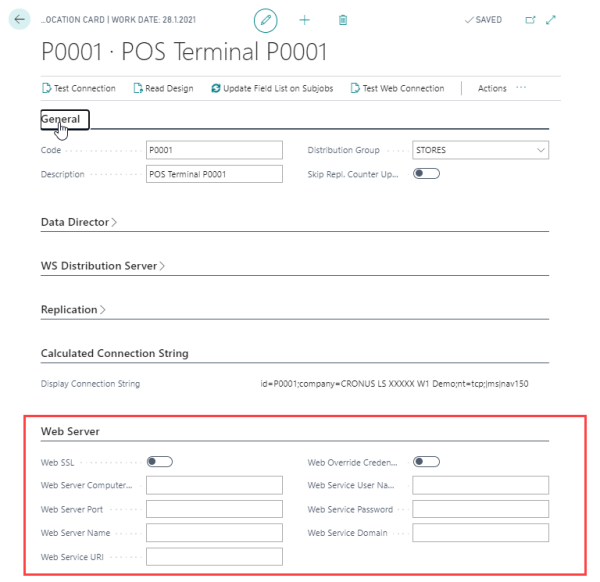 2. On the Distribution Location Card, make sure you enter the correct URL in Web Service URI field in the Web Server FastTab