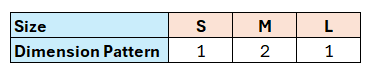 The Dimension Patterns for the sizes are defined as follows: