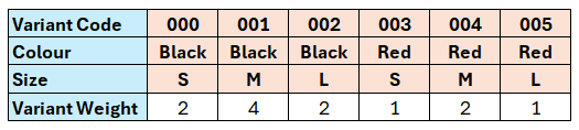 The Variant Weights for the variants are defined as follows:
