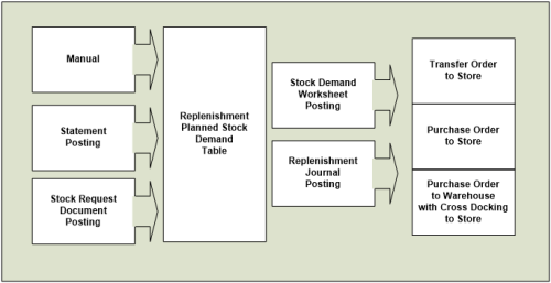 This means that records with these values are created in the Replenishment Planned Stock Demand table. The next step is when you run a Replenishment Journal of the type Purchase Order to Store. The records are included in the process and the item is ordered from the vendor and delivered to the store directly.