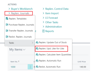 - Use Actions in the Replenishment Role Center as shown in the image below: