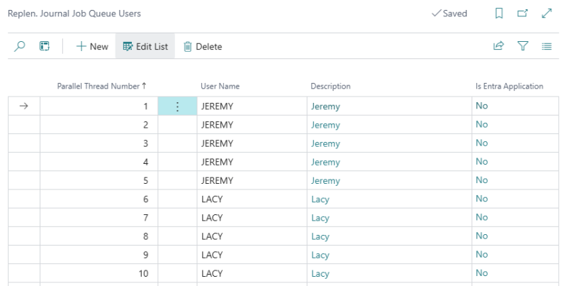 Next, you need to link the Replen. Job Queue Users with the parallel threads. For each parallel thread that is set up, a Job Queue entry will be created, assigned with the linked user.