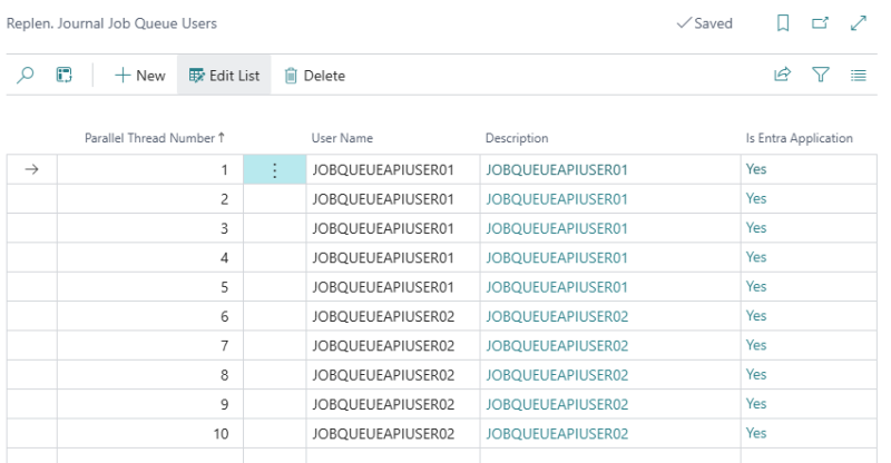 There are a few additional steps that you need to perform before you can run the Replenishment Journal calculation in parallel using Job Queues with Web Service. This includes setting up the Entra ID App, setting up the Entra Application Users that will start up and run the parallel Job Queue entries, linking the user with the parallel threads, and publishing the relevant Web Service.