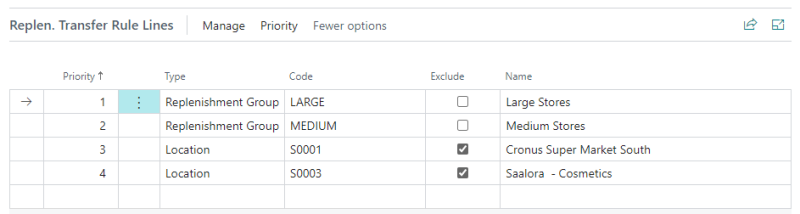 For Replen. Transfer Rule Lines that are marked as Exclude, no Turnover or Sales Quantity will be considered and therefore will be assigned with the lowest priority in the list.