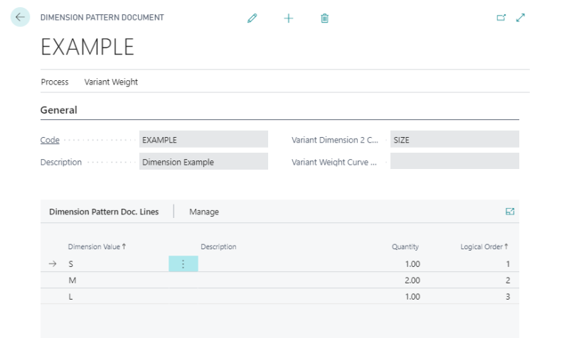 The quantities within the Dimension Pattern can be maintained manually or calculated using Variant Weight Curve.