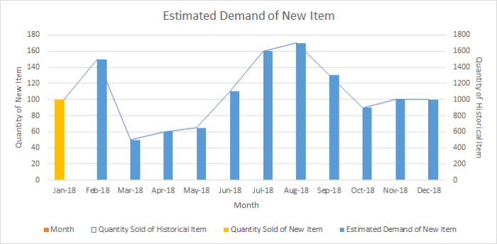 In the scenario above, in January 2018, the user would like to forecast the estimated demand the next 11 months for a newly launched product.