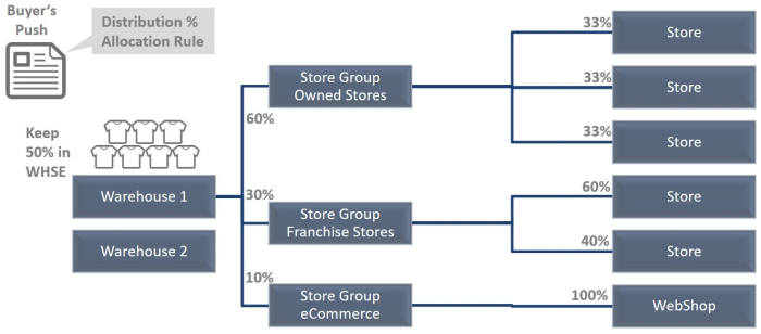 How much of the quantity of the affected item(s) on stock in the warehouse should be pushed to the location(s)? - Allocation Rule