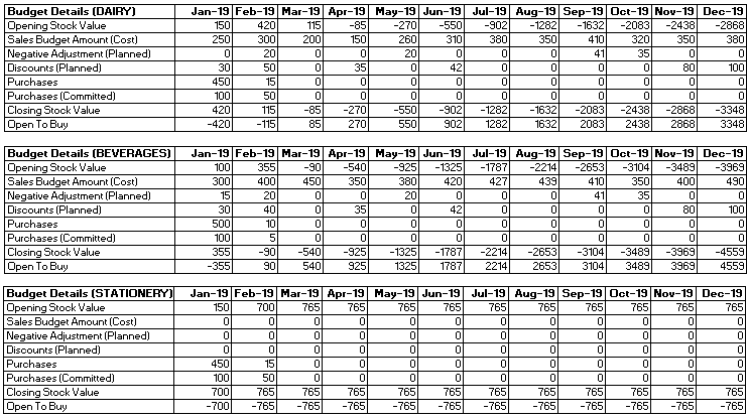 The Open-to-Buy Date is 15-02-2019 and therefore the current period is Feb-2019. The last period is Dec-19.