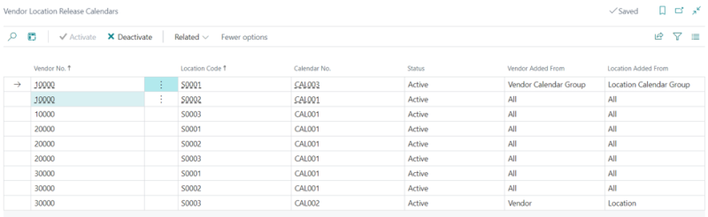 By default, all the Vendor Location Release Calendar combinations are created with status Active. This means that Release Actions will be created from them, and the corresponding purchase orders will be released when these actions are processed.