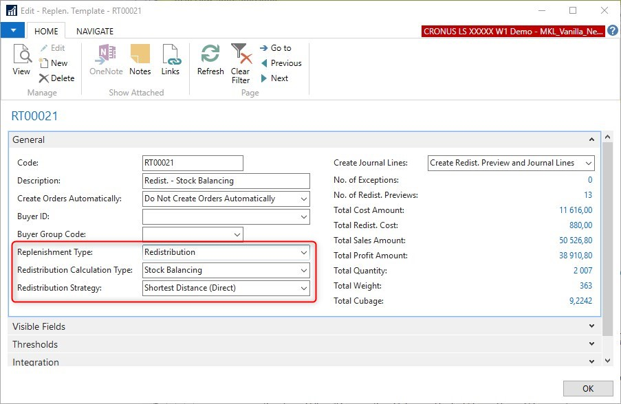 - Replenishment Type is set to Redistribution.