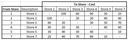 - Least (transportation) cost between the stores