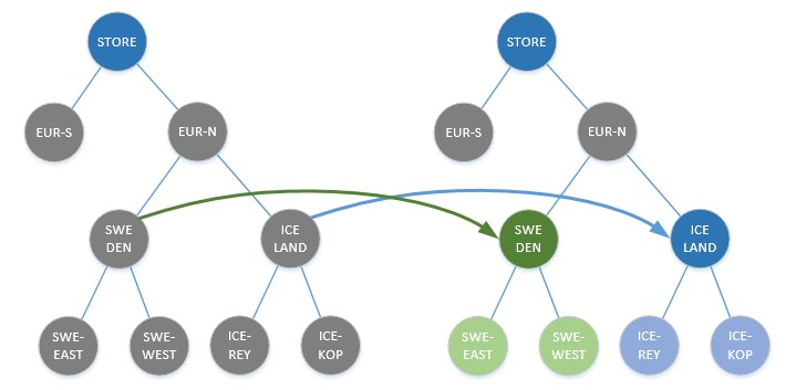 In the Store-to-Store scenario, the stores are replenished from other stores. This is a common approach for one-time or seasonal items which cannot be replenished anymore after the first purchases. When the entire stock is distributed among the stores, re-balancing is needed to ensure that the items are replenished to stores with demand.