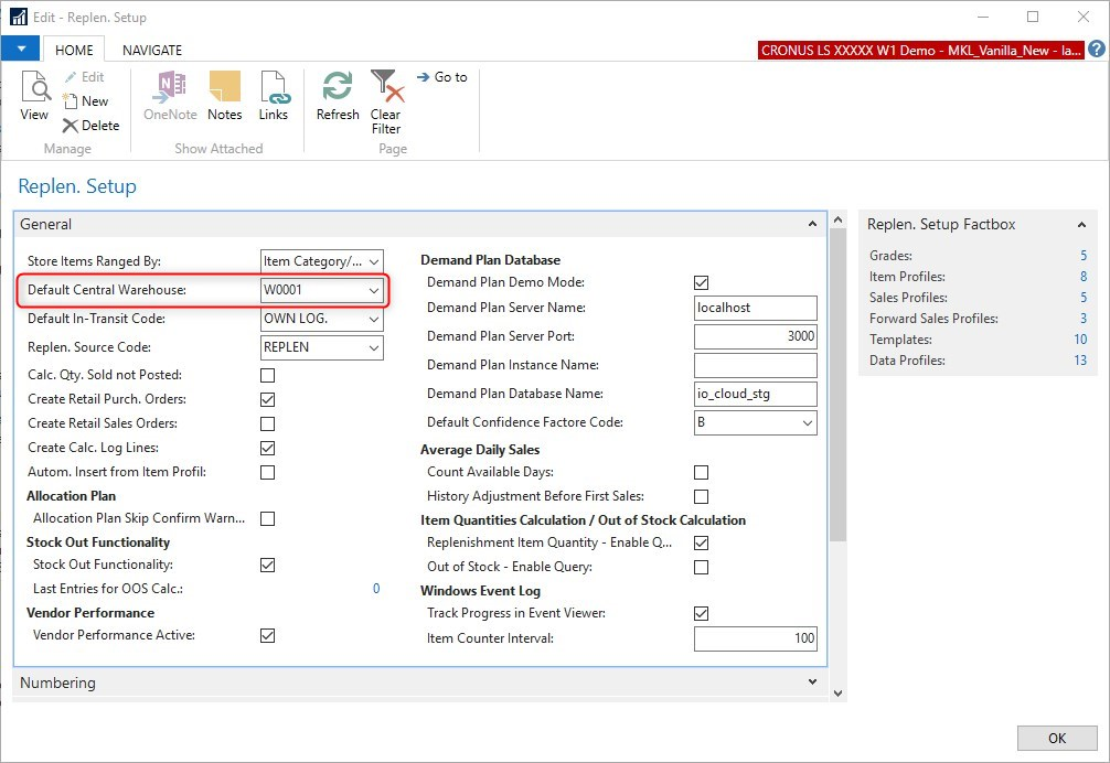 One warehouse location must be set up as a default warehouse location in the field Default Central Warehouse on the Replen. Setup page.