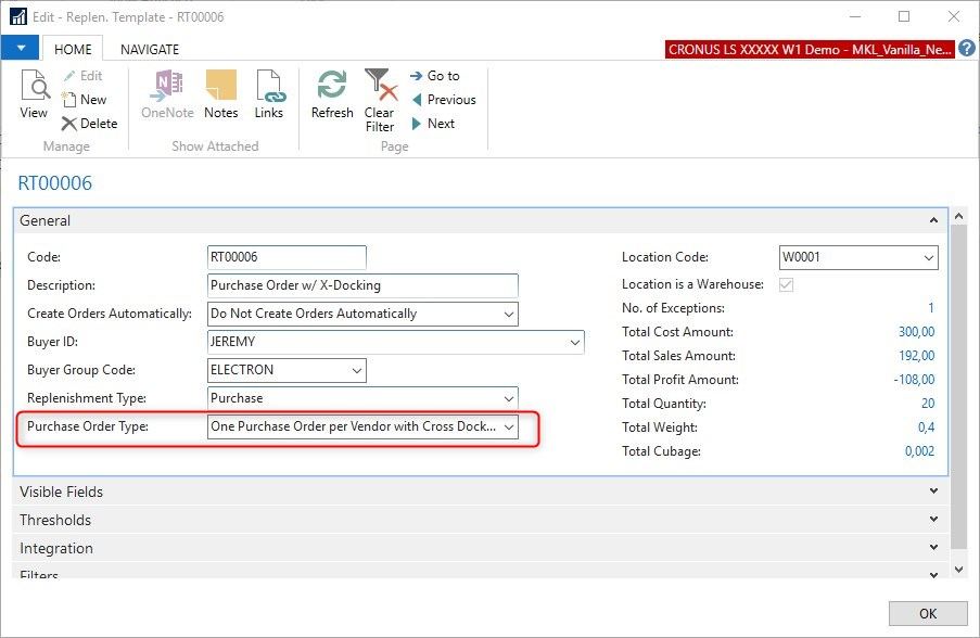 Replenishment Templates and Journals (with Cross Docking)