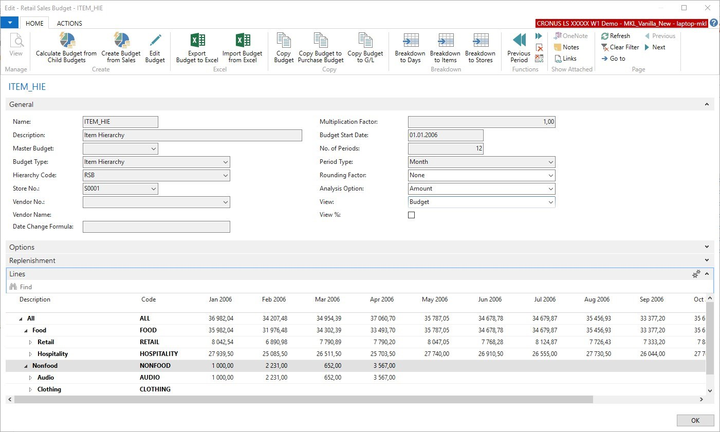 To enable a budget to be used with Planned Demand Events, the budget has to be on day level, for stores and items. Budgets can be broken down from higher levels to this level.