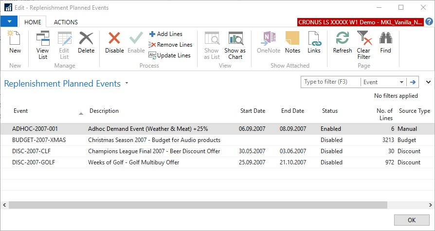 For more information on how to set up Planned Demand Events with budgets see Replen. Planned Sales Demand.