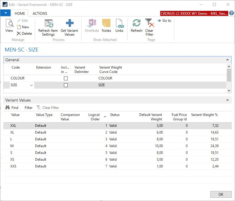 The Variant Weight Curve allows the definition and calculation of weights for Variant Dimensions.