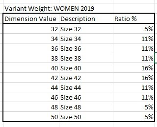 Variant Weights describe a percentage ratio, how a quantity is broken down between different sizes.