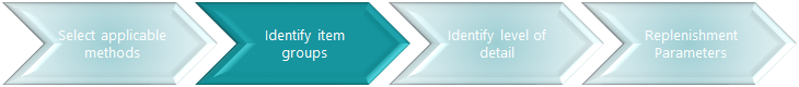 The output from this step is a mapping of item groups with applicable replenishment methods.