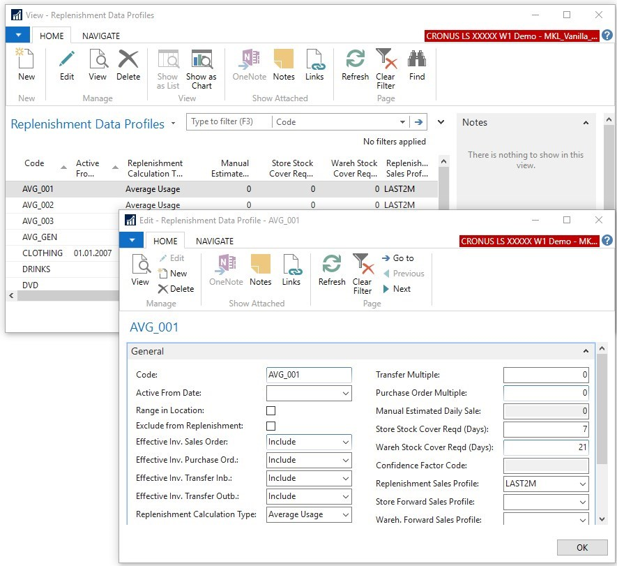 If the grouping levels are in line with LS Central's item grouping (Division, Item Category, Product Groups), Data Profiles can be used to reduce the maintenance effort. A Data Profile is a container that holds the selected Replenishment method and parameters. The Data Profile can be assigned to: