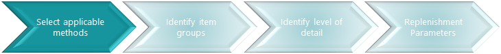 The output from this step is an overview of applicable replenishment methods.