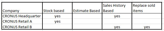 • Get an understanding of the needed replenishment methods