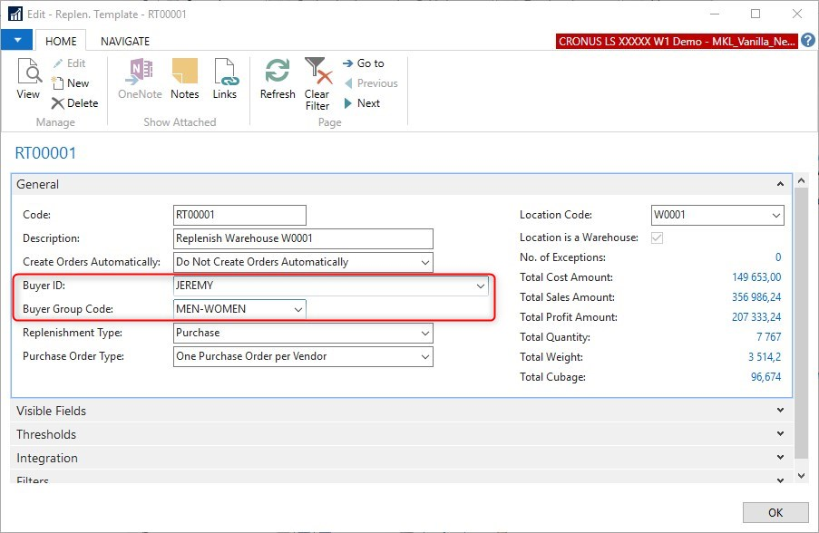 The Retail Buyer and Retail Buyer Group can be assigned to Replenishment Templates and Journals. The Retail Buyer is defined in the Retail User table and can be assigned to a Retail Buyer Group: