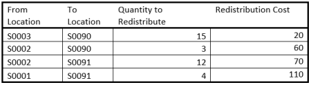 Note: A supply location will not be considered in the calculation, if the value of Redist. Cost in the Redist. Matrix is 0. For more information on how to maintain the Redist. Cost see How to Maintain Redist. Transfer Cost.