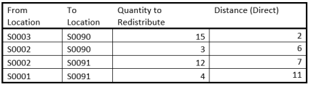 Referring to the example above, the Redist. Strategy Shortest Distance (Direct) will always look for a supply location with the shortest Distance (Direct), which can be calculated in the Redist. Matrix by using Bing Maps API.