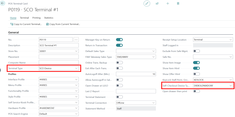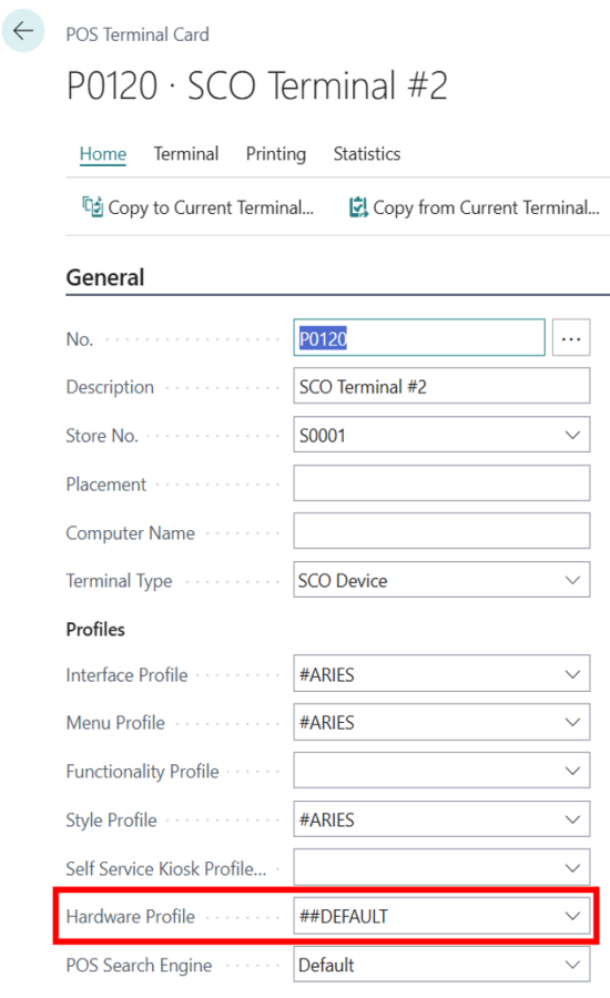 SCO uses the Hardware Profile in the following order of precedence: SCO Card → POS Terminal → Store.