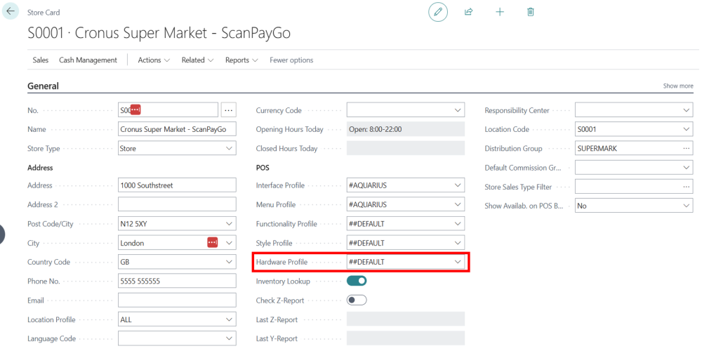 The Hardware Profile defines which hardware devices (EFT, printers, scanners, scales) SCO communicates with through Hardware Station.