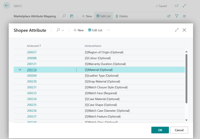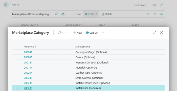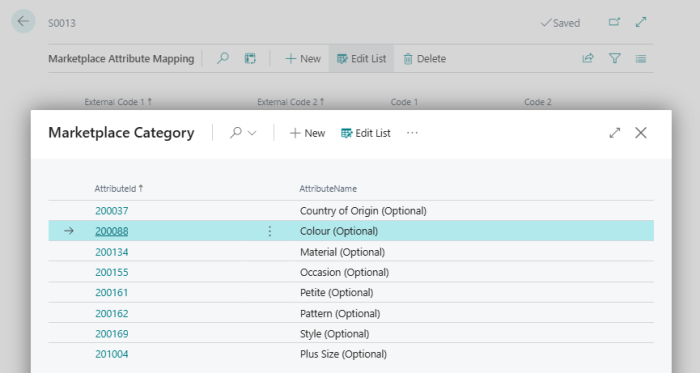 - Next, go to Related - Mapping - Marketplace Attribute and map the required attributes for the product selected earlier by first selecting the sameCategory ID used in the category mapping; see the example below for how the mapping can be done.