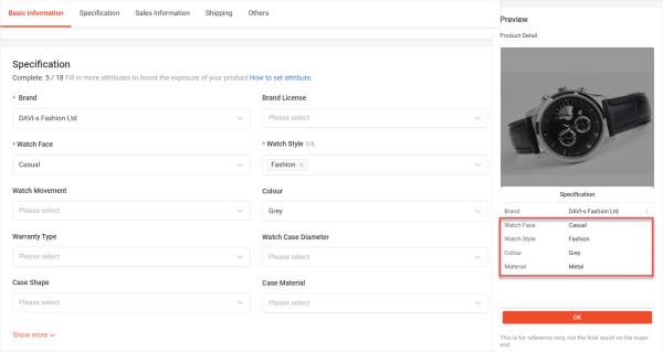 | Include Attribute in Item HTML | Central attributes are sent together with the Shopee item description. |