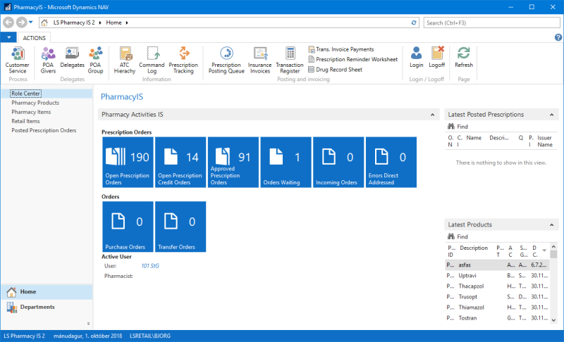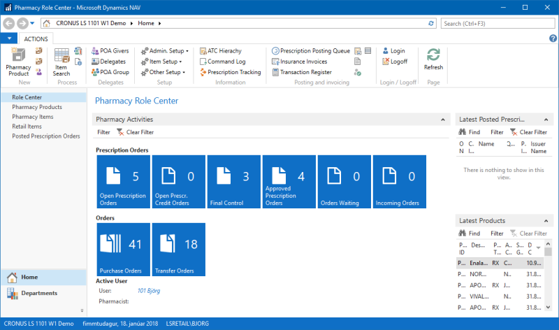 The content and presentation style of the Pharmacy Role Center can be different for different users as it is specially designed for specific user profiles. The Role Center provides a quick overview of the business with live data.